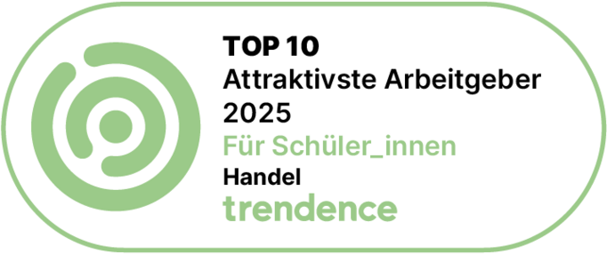 Auch in der Kategorie Fachkräfte wurden wir von Trendence ausgezeichnet. Wir befinden uns in der Kategorie Handel unter den Top 10 Unternehmen.